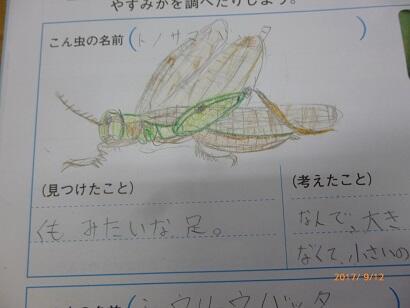 記録した後は、死んだらかわいそうだとすぐに逃がしてあげました。理科学習をとおして「いのちの大切さ・尊さ」にも気付かせていきたいと思っています。