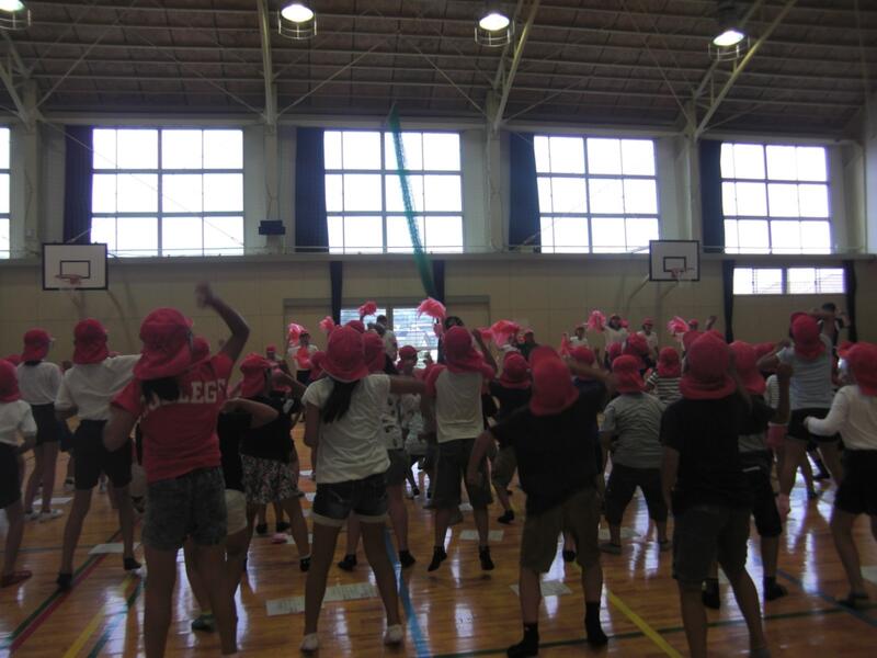 9月12日(水)の昼休み、赤団の応援練習が行われました。今回の練習では、リーダーの笛の音に合わせて手拍子をしたり、掛け声を出したりする練習を行いました。最初は、うまく手拍子を合わせることができなかった赤団の子どもたちも、たくさん練習するにしたがって、だんだんと揃うようになってきました。また、歌に合わせて帽子を振って踊る応援の練習も行いました。赤団の子どもたちは、どの応援の練習も楽しそうに、そして一生懸命行っていました。練習が終わる頃には、汗びっしょりになっていた子どもたちでしたが、その顔はとてもいい笑顔ばかりでした。