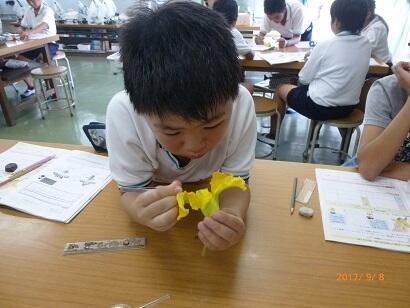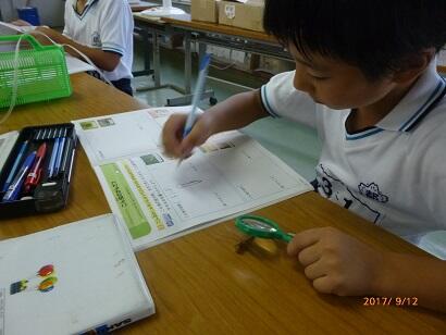 次に、理科室に戻り、詳しくかんさつカードに書いていきました。