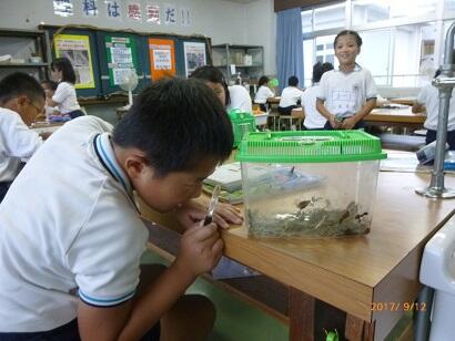 記録した後は、死んだらかわいそうだとすぐに逃がしてあげました。理科学習をとおして「いのちの大切さ・尊さ」にも気付かせていきたいと思っています。