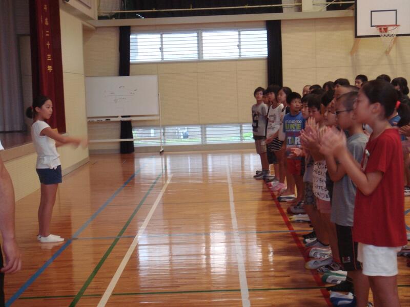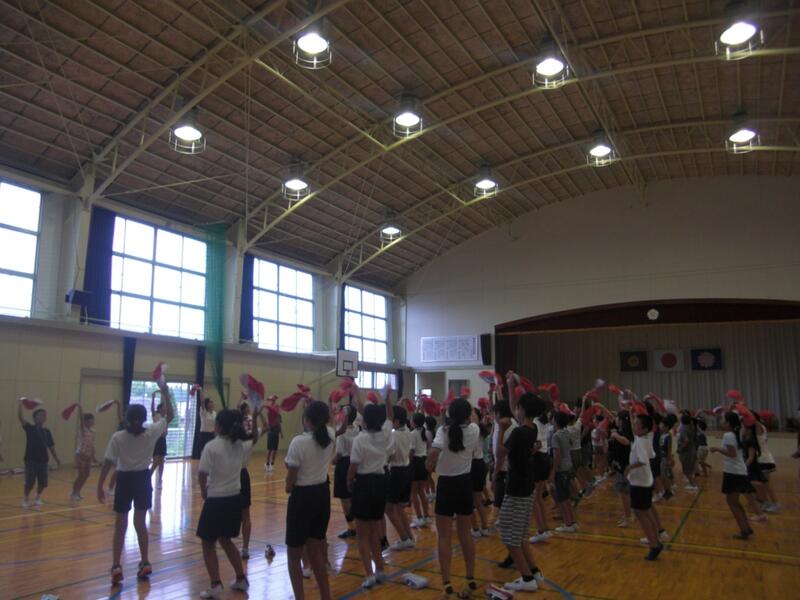 全校ダンスで行う都農町音頭を指導するために、地域の方が2名講師として来てくださいました。