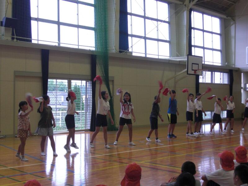 9月12日(水)の昼休み、赤団の応援練習が行われました。今回の練習では、リーダーの笛の音に合わせて手拍子をしたり、掛け声を出したりする練習を行いました。最初は、うまく手拍子を合わせることができなかった赤団の子どもたちも、たくさん練習するにしたがって、だんだんと揃うようになってきました。また、歌に合わせて帽子を振って踊る応援の練習も行いました。赤団の子どもたちは、どの応援の練習も楽しそうに、そして一生懸命行っていました。練習が終わる頃には、汗びっしょりになっていた子どもたちでしたが、その顔はとてもいい笑顔ばかりでした。