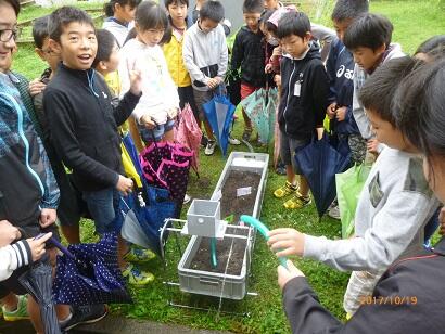 準備は大変ですが、子ども達が目を輝かせながら学習する姿を見ると感動します。次の時間は、実際に都農川に行って、内側と外側の様子を観察します。
