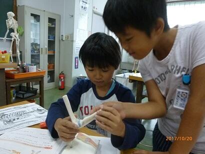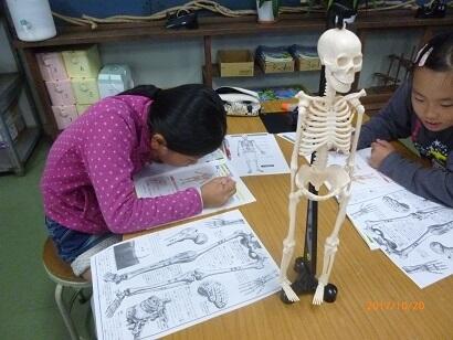 この日は、①骨と関節について、模型や資料を使って調べていきました。