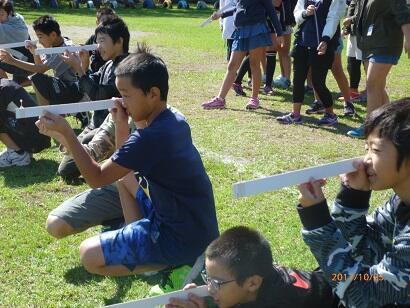 最後に「日食」について説明した後、日食を利用すると「地球から太陽までの距離を出すことができる」という体験をさせました。
