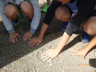 今回の観察は、「日なたと日かげの地面」の違いです。
