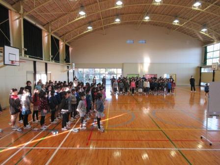 「おはようございます」「こんにちは」「ありがとうございます」・・・。寒い朝でしたが、体育館中に子ども達の声が響き渡りました。