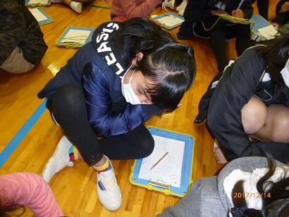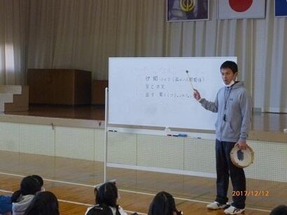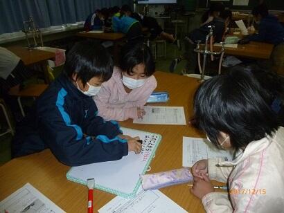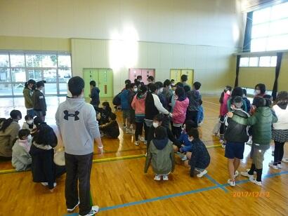 12月19日(火)の朝は学年集会でした。朝から、元気いっぱいのあいさつ、歌声が響きました。12月の詩は「ごかい」。抑揚を付けて、はきはきと音読することができました。