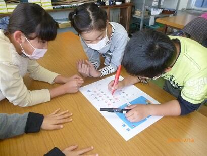 仲間づくりの条件は、「異学年であること」「男女混合であること」です。最初はなかなかグルーピングできなかったのですが、徐々にリーダーシップを取る子が表れ、スムーズに、笑顔でできるようになりました。こういう機会もリーダーを育てていく上で大切だと再認識しました。