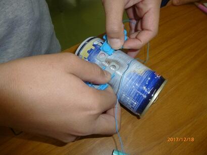 【空き缶は、鉄やアルミニウムだけど、明かりがつかない。でも、塗料をはがすと明かりがついた。】