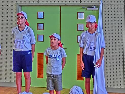 曇りとはいえ、暑い中での練習となりましたが、子どもたちは放送の声や先生の指示にしたがって素早く動くことができました。そのため、予定していなかった運動会の歌の練習まで行うことができました。