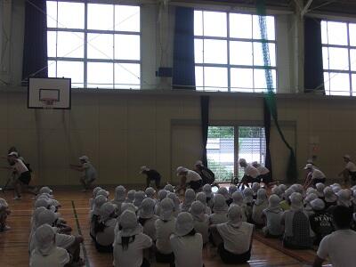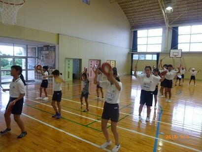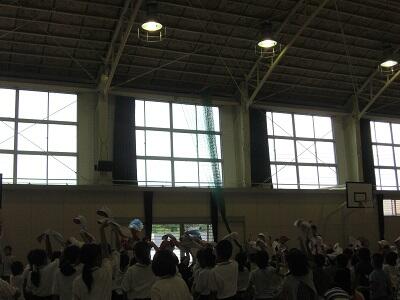 9月28日、ふと体育館をのぞいてみると2年1組の子ども達の笑い声が聞こえてきました。
