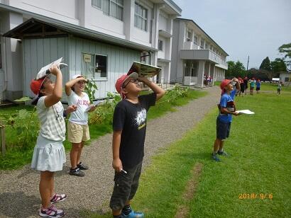 そのためには、雲の動きや種類がわからないとだめだということで、この日は、外に出て観察しました。