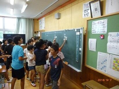 2学期最初の参観日がありました。それぞれの学級で、元気に発表したり友達と話し合ったりする姿や、楽しく動きを付けて歌ったり真剣に考えたりする姿が見られました。それぞれの学級の様子を写真でお伝えします。