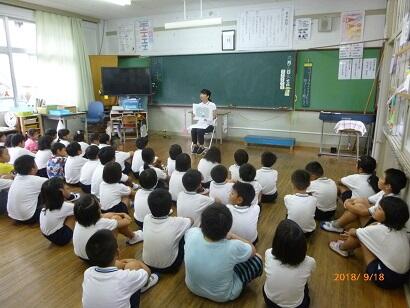 各学年、「朝の歌」や「朝の声出し」の後、発達の段階に応じて、様々な方法で命の大切さについて考えさせていました。