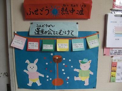 保健室の先生が、運動会に向けて、健康面で気を付けてほしいことを掲示しています。『夜は早く寝ましょう。』『朝ごはんをしっかり食べましょう。』など、自分の体調を整えるため、そして、元気よく運動会の練習を行うために大切なことがたくさん書かれています。