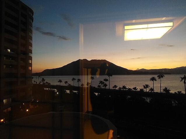 【ホテルから、桜島が見えます。日の出も見られそうですね。】