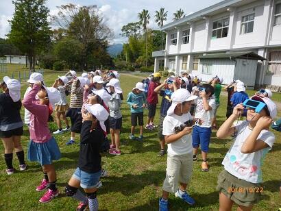【しゃ光板を使って、太陽の位置を確認しました。】