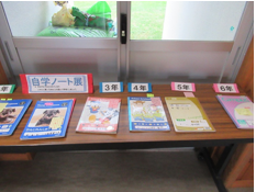 また、今週は、自学ノート展が行われています。児童玄関や各学級の廊下に、子どもたちが日々頑張っている自学ノートが展示されています。廊下に展示してある自学ノートは、各学級、学年で選ばれたもののため、どの自学ノートも内容やノートの使い方が素晴らしいものばかりです。
