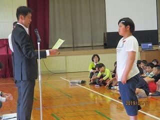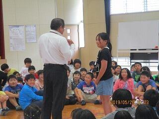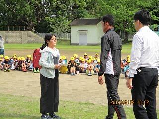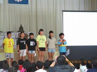 全校児童のまえで、帰りのあいさつを元気にしてくれました。