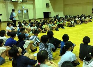 会に参加してくださった河野雄三さんは、全校児童に向けて、戦争中の様子や三人の先生が亡くなられた時の様子、そして平和の大切さについてお話しして下さいました。