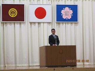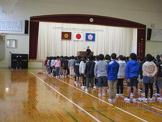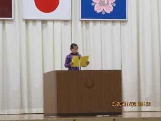 新年最初の校歌斉唱、寒い中大きな声で頑張りました。