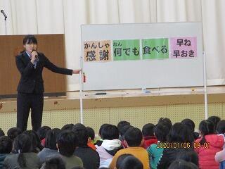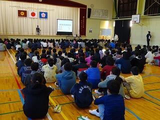 1月20日から24日は「給食感謝週間」で、都農小学校では、21日に給食感謝集会を行いました。普段から給食を作ってくださる方、配達をしてくださる方といった給食に携わる全ての方々へ感謝をしました。給食委員会の子どもたちはクイズを取り入れた劇を行い、クイズの答えに驚きの声が上がっていました。栄養士の先生からも給食に関するお話を聞かせていただきました。感謝の気もちを忘れずにこれからの給食もしっかりと食べていってほしいですね。