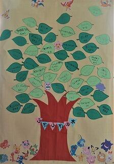 5月19日(火)から6月12日(金)まで、人権強調月間として「ふわふわ言葉の木」の取組を行いました。各クラスで、友達に言われるとうれしくなる言葉を木の葉に書き、ふわふわの木に貼っていきました。日に日に葉っぱは増え、毎日2匹ずつポケモンたちも木の下に集まってきました。「ありがとう」「じょうずだね」「いっしょに遊ぼう」など、言われるとうれしくなる言葉でいっぱいにあふれたふわふわ言葉の木。