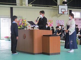各学年の代表児童が校長先生から修了証を受け取りました。