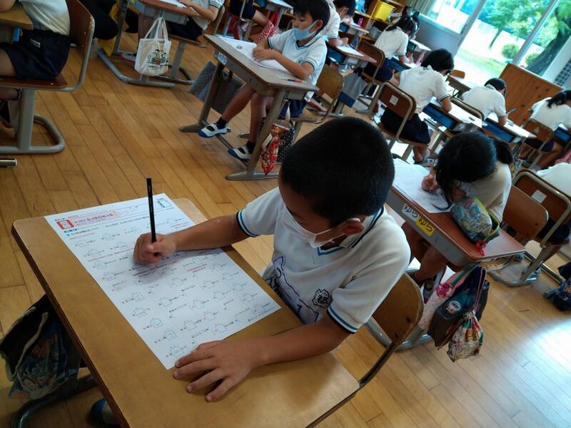 6・7月は学力向上月間です。早いもので1学期も終わりに近くなり、この時期にこれまでの振り返りをして、次へステップアップします。その一環として今週は計算力テストを全学年で決めた時間に実施しています。昨日、1年生で実施したテストの様子を見てきました。みんな学んだ力を生かしてテストへチャレンジ。早く終わった人、まだの人それぞれでしたが、みんな一生懸命取り組んでいました。この後は漢字テストを計画しています。さあ、頑張りましょう!