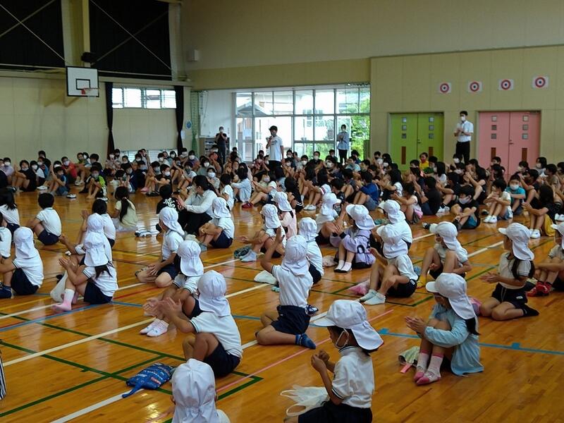 28日(月)、2か月ぶりに体育館で全校集会をしました。前回行ったオンライン集会も貴重な経験になりましたが、やっぱり全校児童・教職員が一堂に会する場はよいものです。今回は「命について」の話をしました。みんな反応しながらしっかり聞いてきました。その後は生徒指導の先生よりトイレのスリッパについての話がありました。「5つのできる子プラス1」の達成へ向けて、意識を高めて生活していきましょう。最後に3人の運動面での活躍をみんなでお祝いしました。