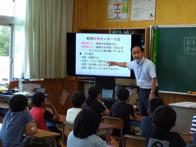 今日の3校時、4年生対象にいのちの授業がありました。みやざき動物愛護センターの方が2名来られて、「人と動物とのつながりを学び、いのちについて考えよう」をテーマに心で考える1時間でした。実際に聴診器を当てて生きている実感を味わいながら、①今から30代さかのぼると1億人以上の命の関わりがある②あなた自身がいなくなったらこれからの命をつなぐことができなくなる などの学びを得ることができました。秋には実際にみやざき動物愛護センターへ行って学びます。かけがえのない命について、時には楽しく時には真剣にしっかりと考えることができました。