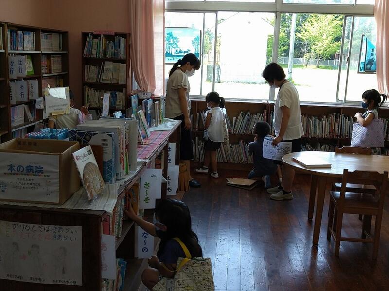 学校を陰で支えていただいている人紹介の第2弾です。毎週木曜に来校されている図書サポートの方です。都農町立学校を1日ずつ回られて、図書室のいろいろな整備をしていただいています。今日は1年生が図書室を利用していたので、貸出処理などをされていました。普段何気なく利用している図書室、よく見てみると心の友達となる本が見つかるかもしれませんよ。