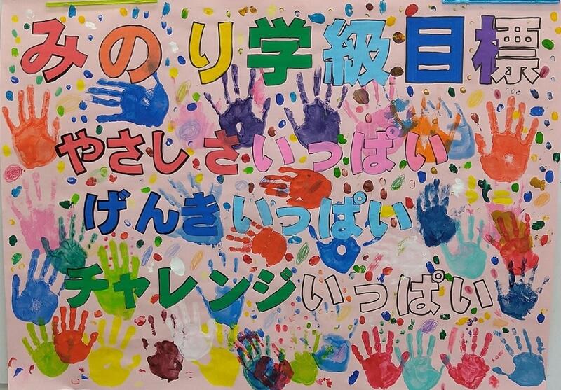 夏休みに入ると、当たり前のことですが、教室はがらんとしています。今週は個人面談期間なので、午後になると時折人の往来がありますが…。さて遅くなりましたが、学級目標紹介、今日はおすずとみのり学級です。1学期終業日には、みんなで育てた学級園のきゅうりをしっかり収穫することができましたね!