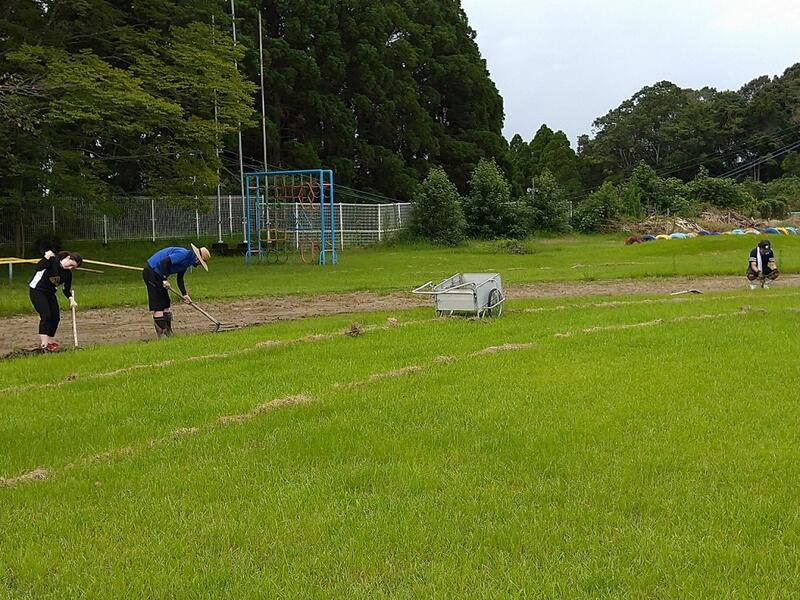 今日、先生方で運動会へ向けて、運動場のポイント打ちや草抜き作業をしました。蒸し暑さや小雨交じりのあいにくの天気でしたが、運動会の盛会を願って取り組みました。感染症対応で先が見えない状況ではありますが、予定通りの開催ができるよう、これからも準備を進めていきます。