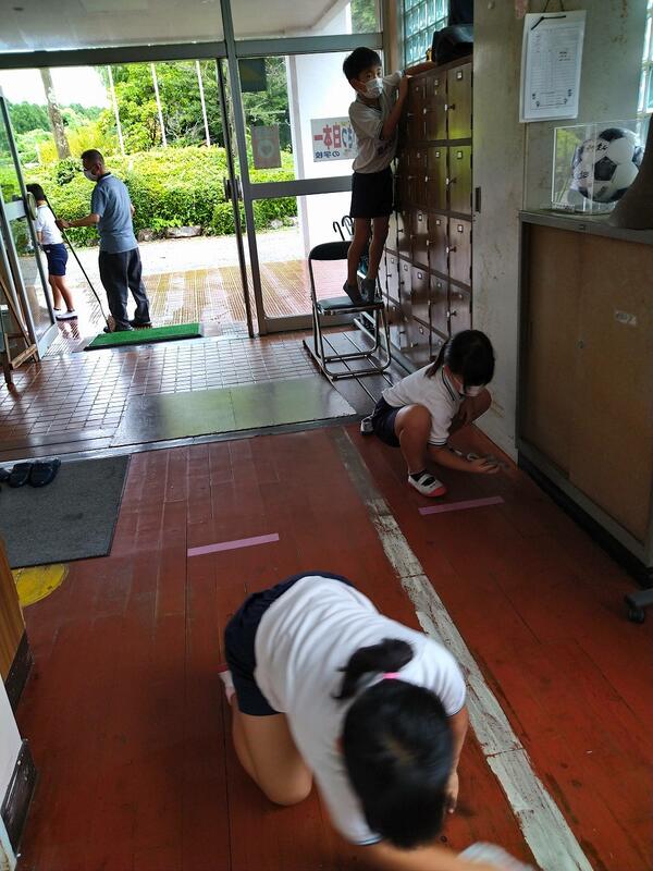 週2回、本校は朝清掃を20分間しています。毎日ではないのに、校内は整っています。それはこの清掃時間の頑張りによるところが大きいです。下の写真は見づらいですが、雑巾で拭いた後のふきすじです。これは、3年生の校長室そうじの様子です。この日は清掃開始直後、私は校長室を不在していたので、黙って入らず、ぼんやり待っていることなく、自分たちで判断してその前の廊下を黙々と拭いていたようです。その後「校長室の掃除をしていいですか?」と聞いて再度清掃開始。こうして、「自分たちで考え自分たちで行動する」~3年生でこれが自然とできることがとてもすばらしいです。これこそ、将来に生きる力ですね!