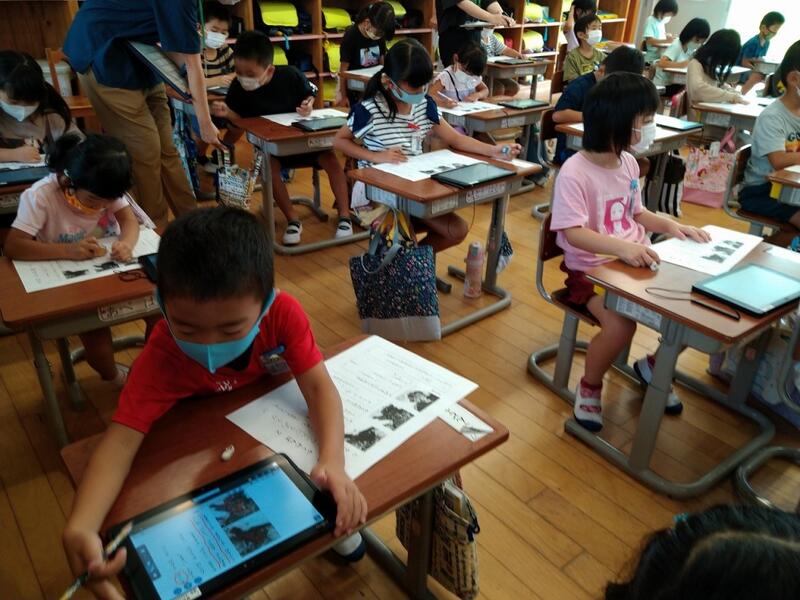 2年みのり学級の授業の次の時間、1年生国語の参観授業でした。この半年間で、1年生の授業の取組は格段と成長しました。聞く姿勢、発表、待つ態度など、これまでの学びをしっかり生かした時間でした。この日の授業は「うみのかくれんぼ」。タブレットを使いながら、楽しく学んでいました。1年生からサクサクとタブレットを使うスキル、大したものです。