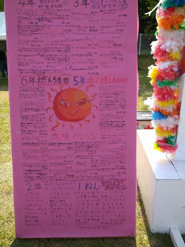 低中高に分かれたリレーそしてプログラム最後を飾る全校リレーでは、それぞれの思いをバトンでつなぎ、転倒してもすぐに起き上がって走る様子を見て、目頭が熱くなりました…