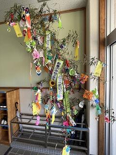 2年生は、七夕飾りをしました。今は学校の玄関に飾っていますが、間もなく町立図書館に展示されます。