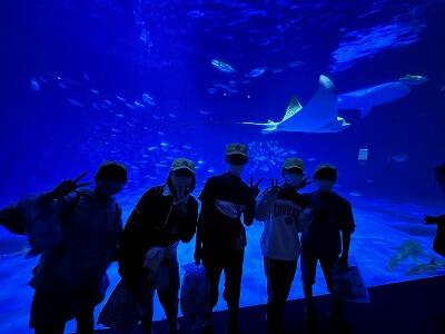 「道の駅すえよし」を出発した後、有村溶岩展望所へ。そしてフェリーで桜島港から鹿児島港へ渡り、子ども達お楽しみの「いおワールドかごしま水族館」にて昼食と見学を済ませました。子ども達は、きびきびとした行動でスムーズに活動が進んでいるようです。