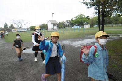 朝からあいにくの雨となりましたが、元気なあいさつとともに登校してきました。