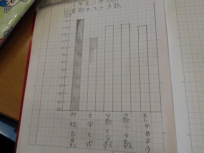 自分のテスト結果をグラフ化し、分析するとあって、どの子も意欲的に学習に取り組んでいました。