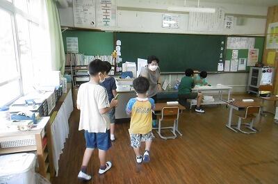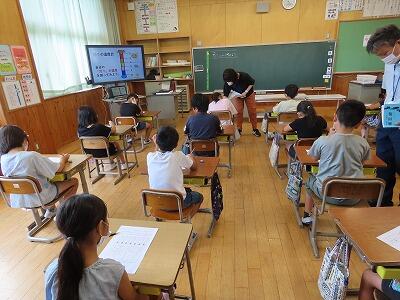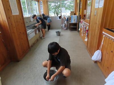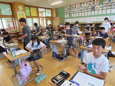 本日は、風水害の避難訓練となっています。今日は、引き渡し訓練は行いません。子どもたちは、地区ごとに集団下校します。(14:00予定)