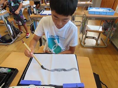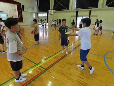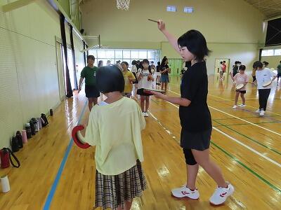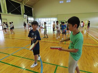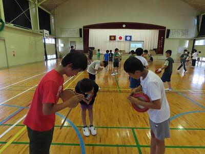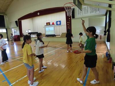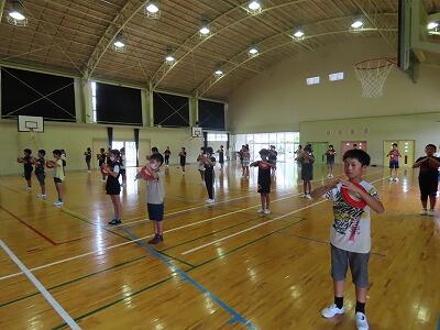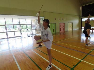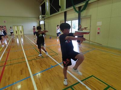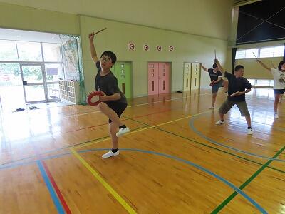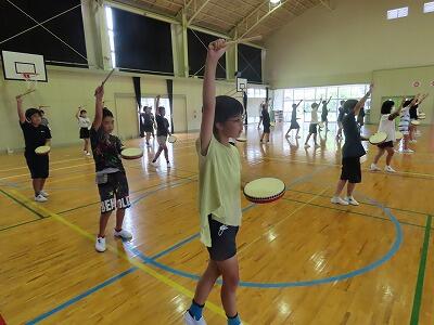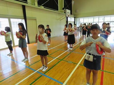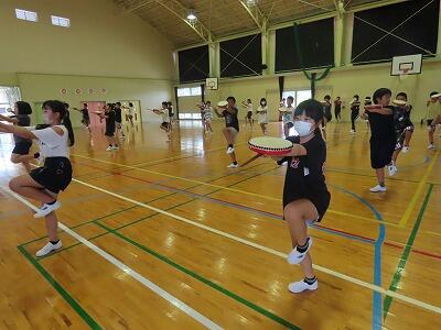 体育館では、6年生が、夏祭りで奉納する「エイサー」の練習中。