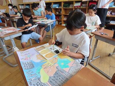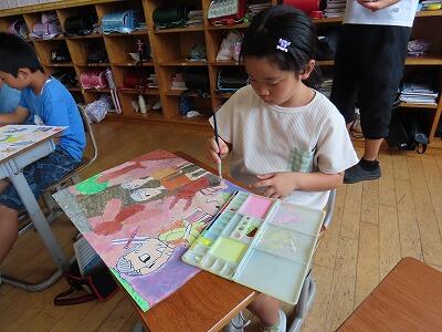 図工で「読書感想画」を制作中。