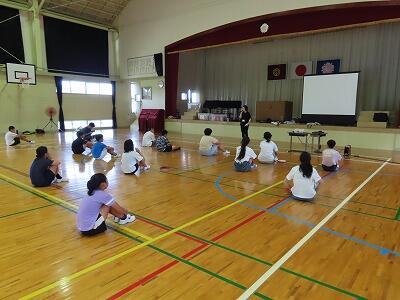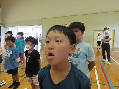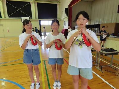 体育館では、6年生が、夏祭りで奉納する「エイサー」の練習中。