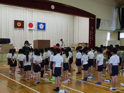 【全校朝会の様子です。】