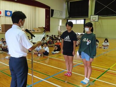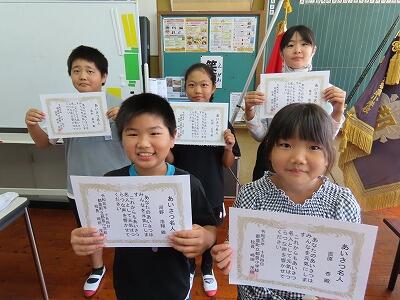 先週のあいさつ名人表彰式の様子です。