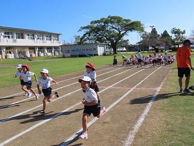 【1~3年生は、リレーの練習中】