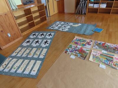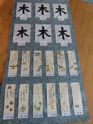 【作品選び、雲龍紙への掲示、とても大変な作業ですが、子ども達の喜ぶ顔を想像しながら、先生たちもがんばりました。】